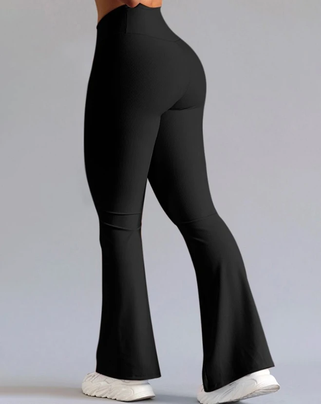 2023 New Fashion Women's Pants Elegant Sexy Overlap Waist Flared Yoga Pants Female Trouser Casual Bottom Female Clothing Outfits