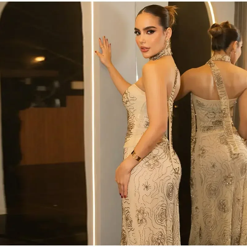 Alluring Beadwork: Intricate bead embellishments on the bust add shimmer and sophistication.