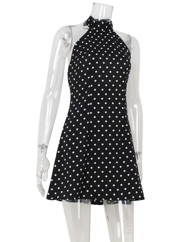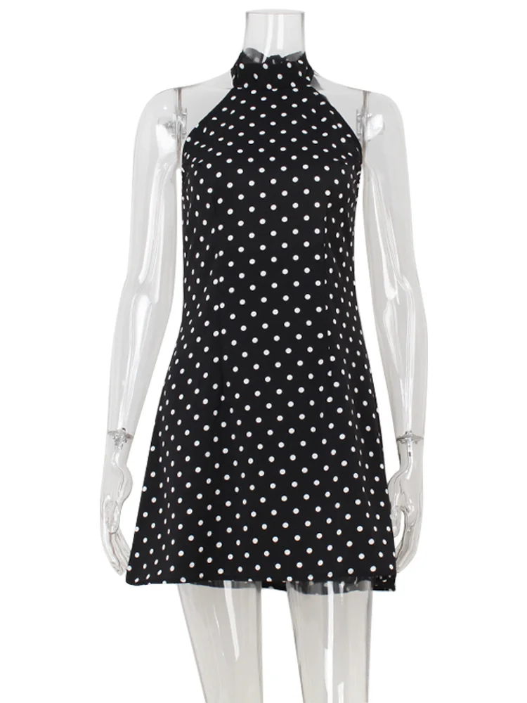 CNYISHE Dot Prints Halter Backless Sleeveless Elegant Party Outfits Women Dresses Summer Sheath Fashion Female Bodycon Trendy