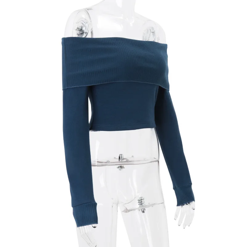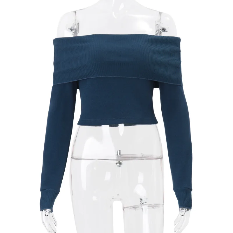 Cryptographic Fashion Ribbed Knit Tops Slim Elegant Club Party Streetwear Sexy Off Shoulder Top Pullover Outfits Women Clothes