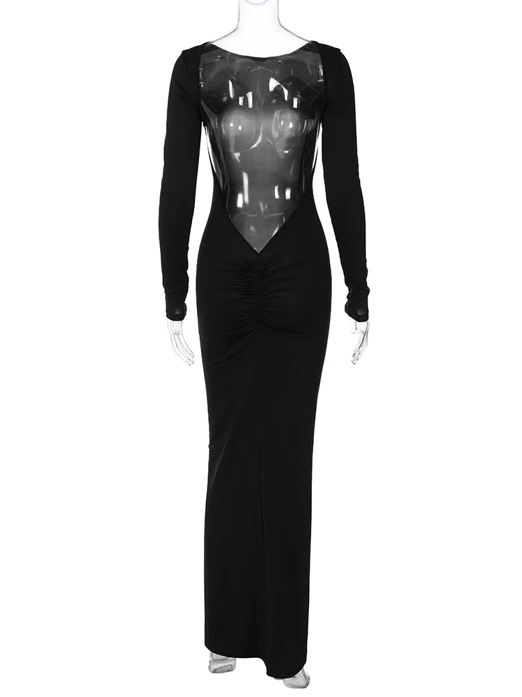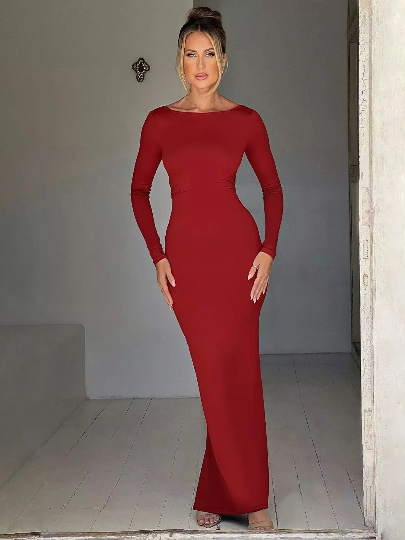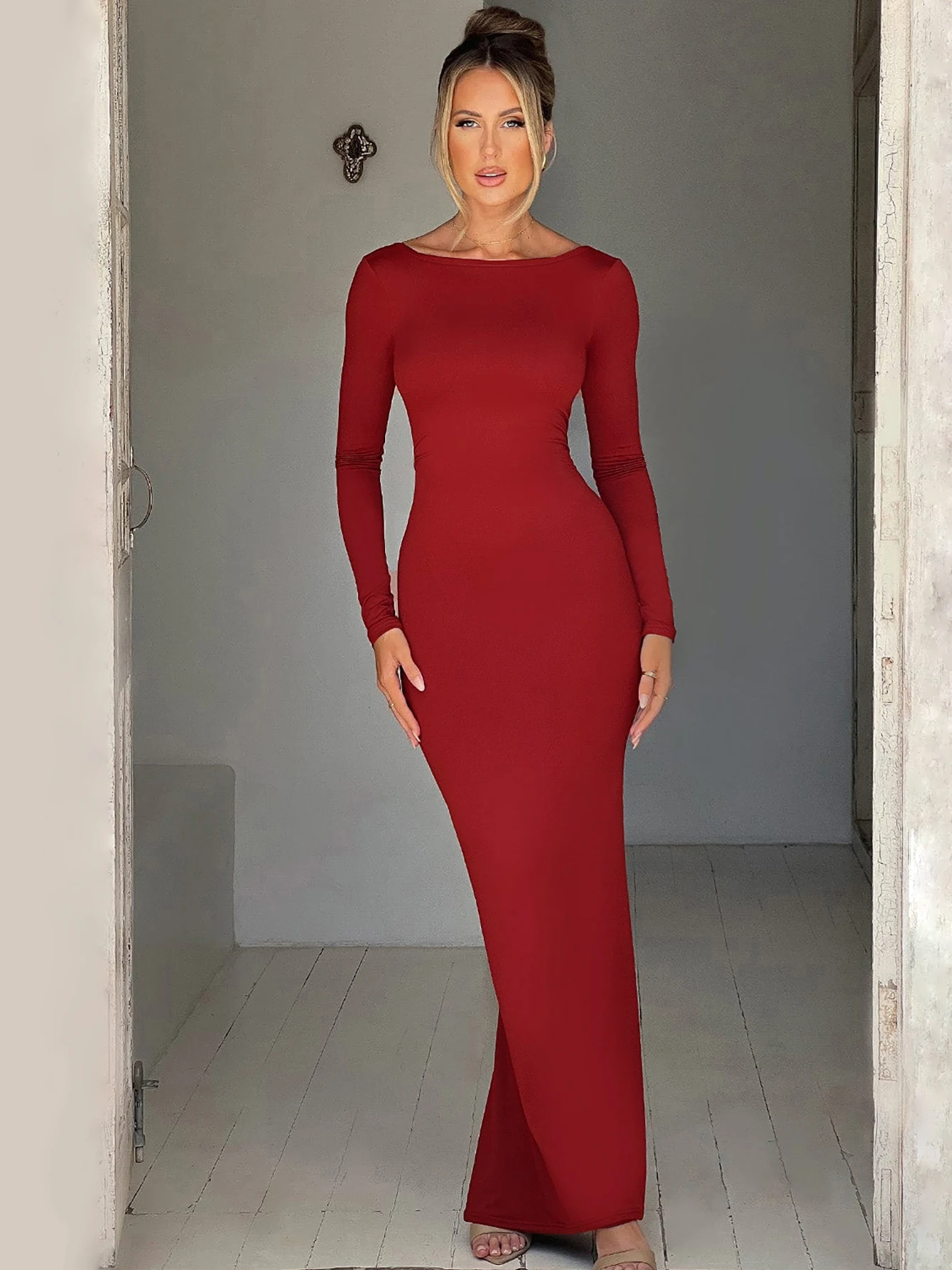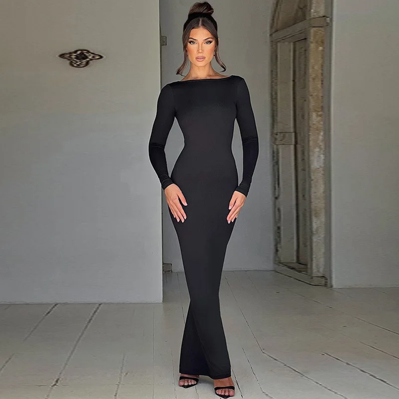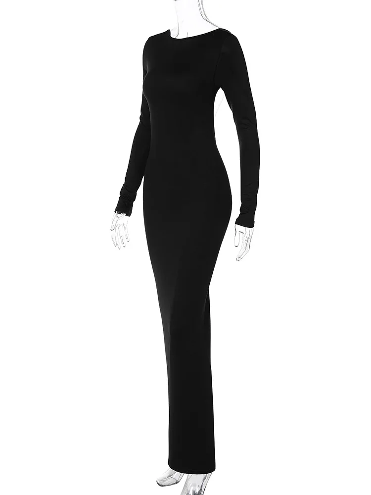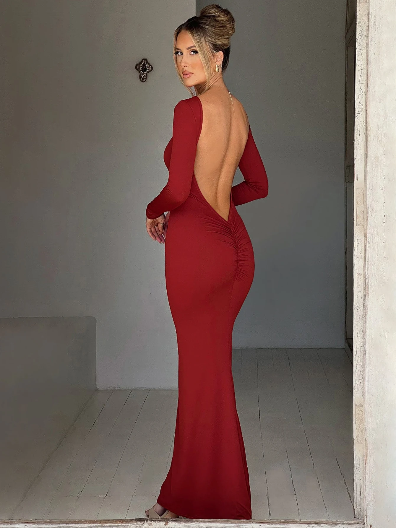Dulzura Long Sleeve Backless Ruched Maxi Dress Women Bodycon Sexy Party Birthday Evening Outfits 2024 Autumn Winter Clothes