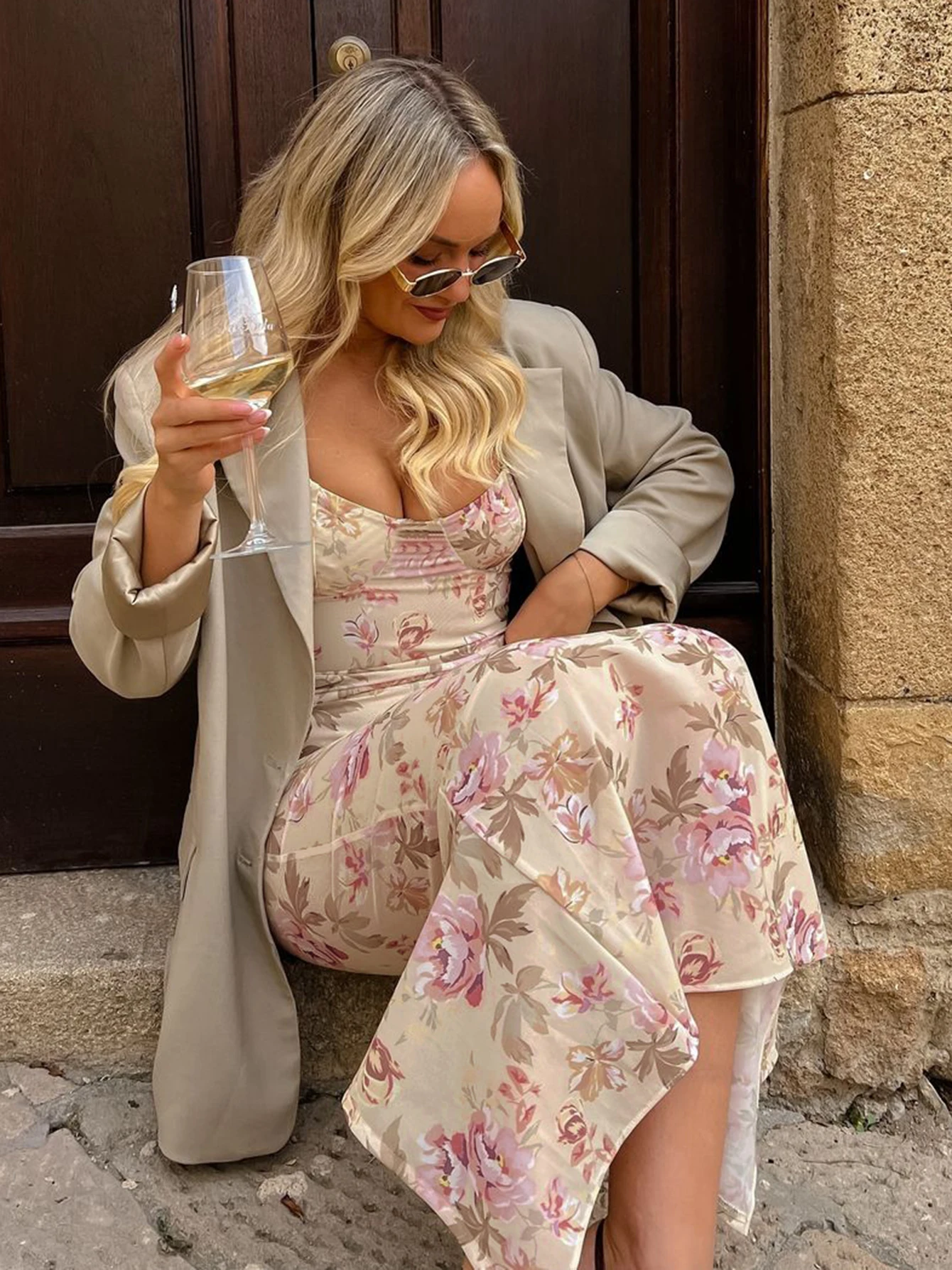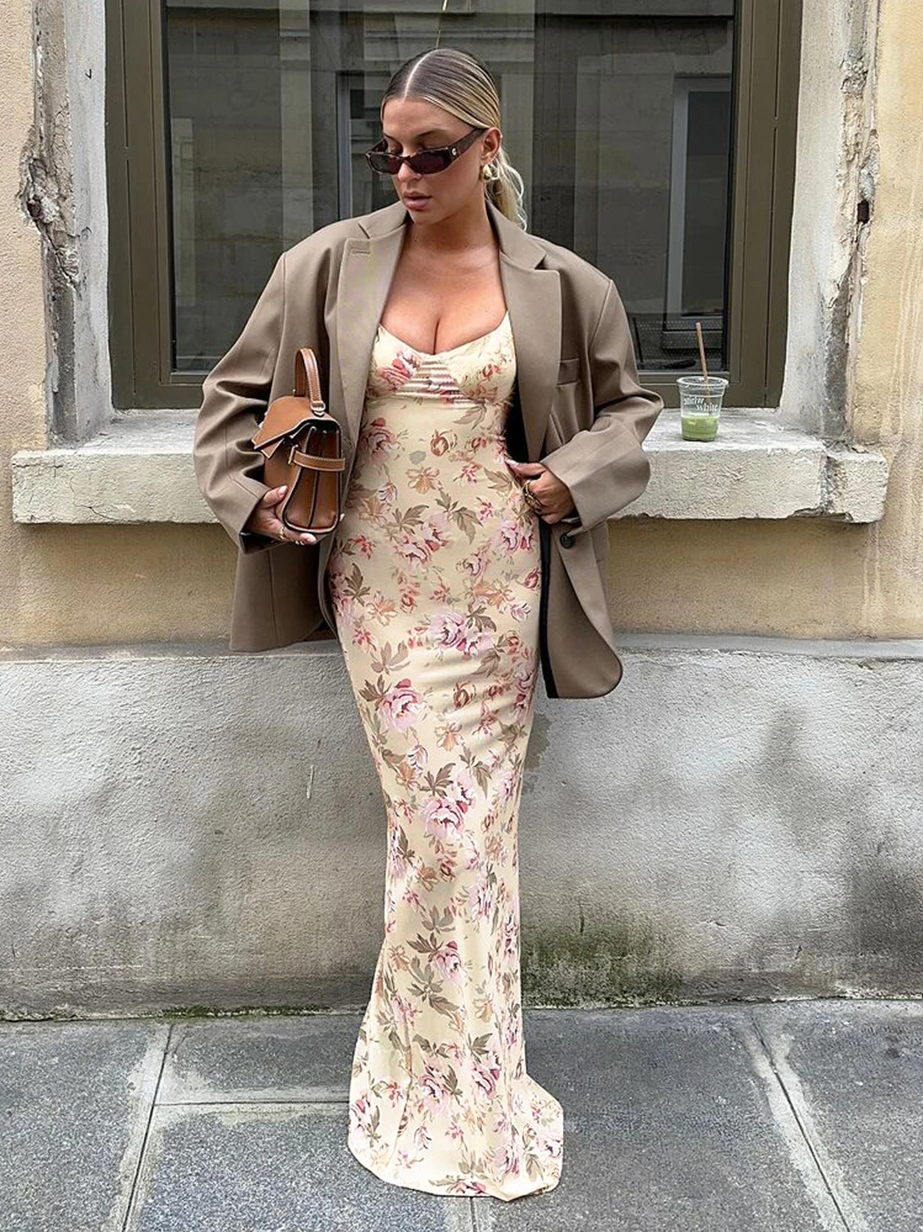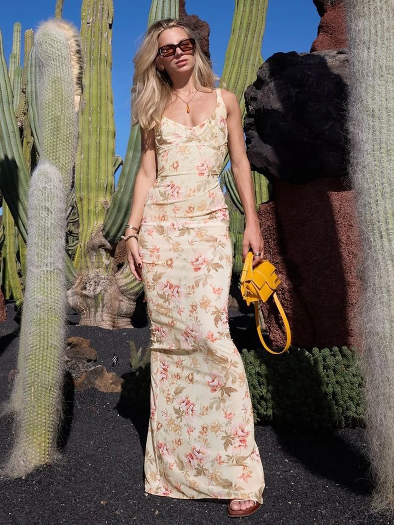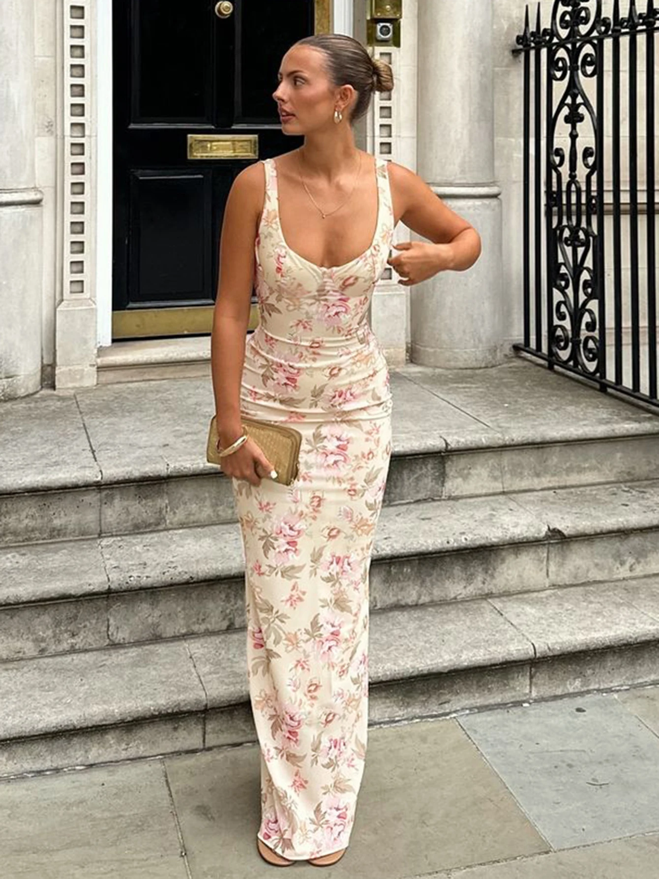 Dulzura Sleeveless Flower Print Maxi Dress Women’S Sexy Elegant Vintage Long Dresss Party Club Streetwear Spring Summer Outfit