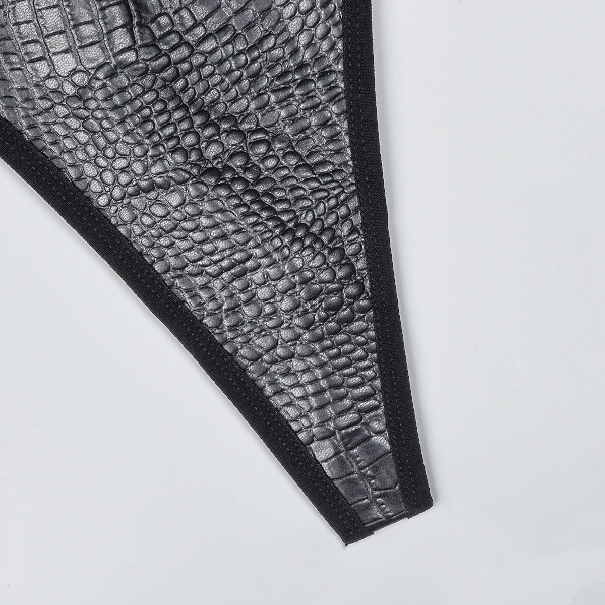 Ellolace Fetish Latex Sexy Female Lingerie Body Sexy Women Luxury Crocodile Leather Bodysuit Call Of The Night Detachable Thong