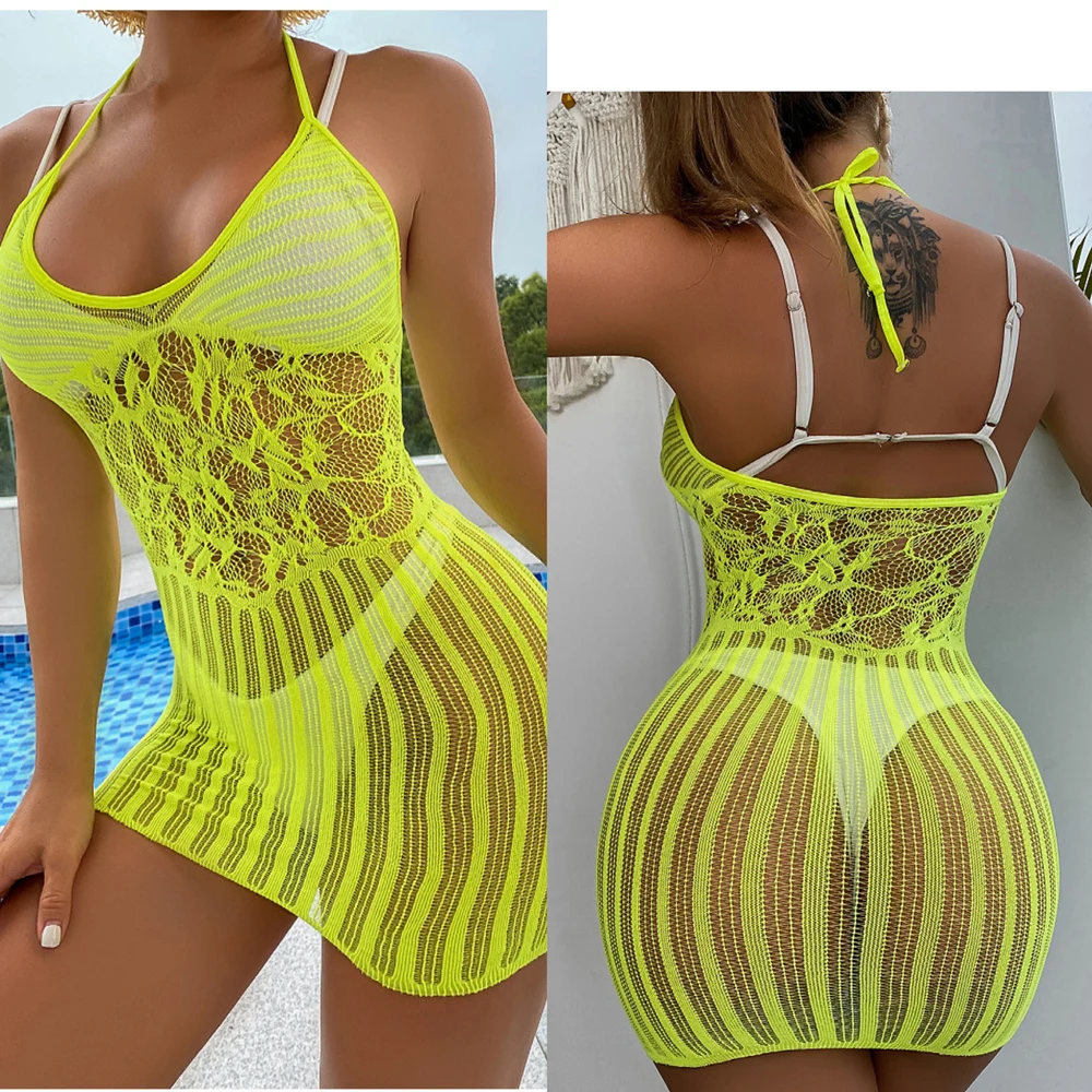 Fashion Women Bodycon Dresses Sleeveless Mini Beach Dress Transparent Sexy Cut Out Babydoll Mini Dress Party Club Outfits LC12