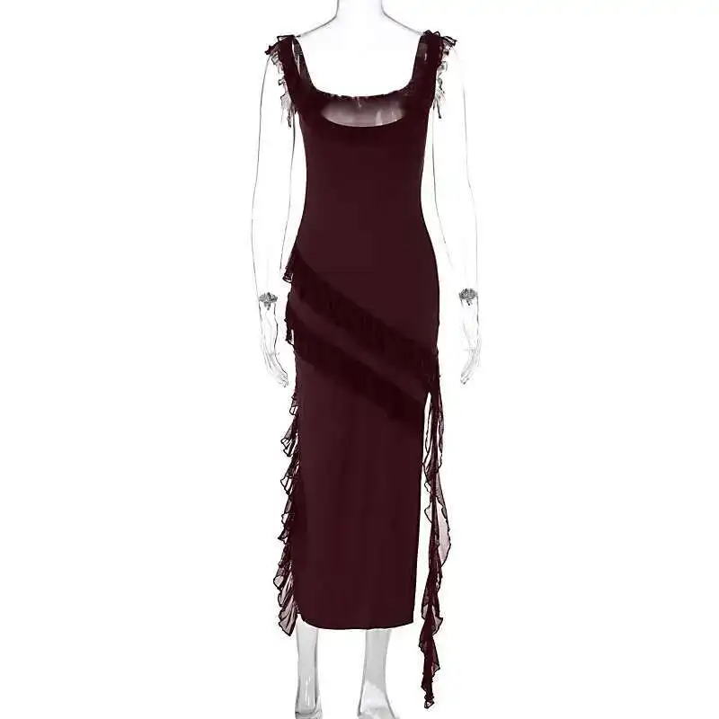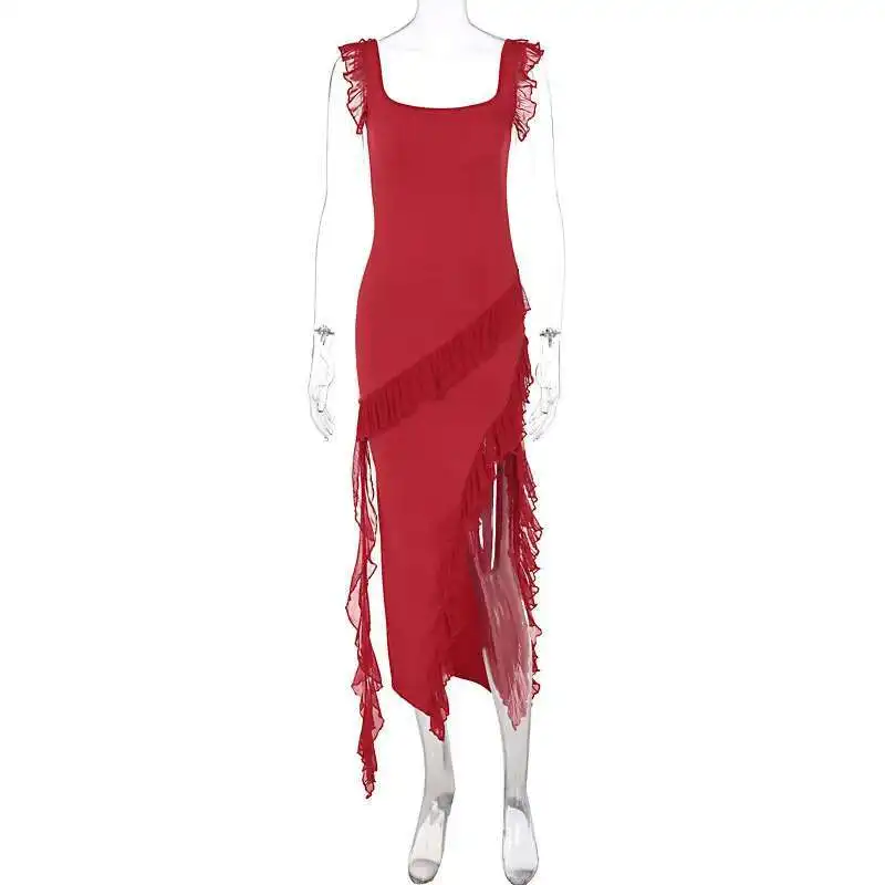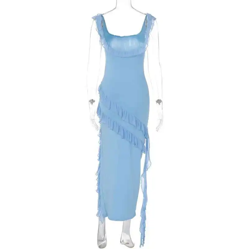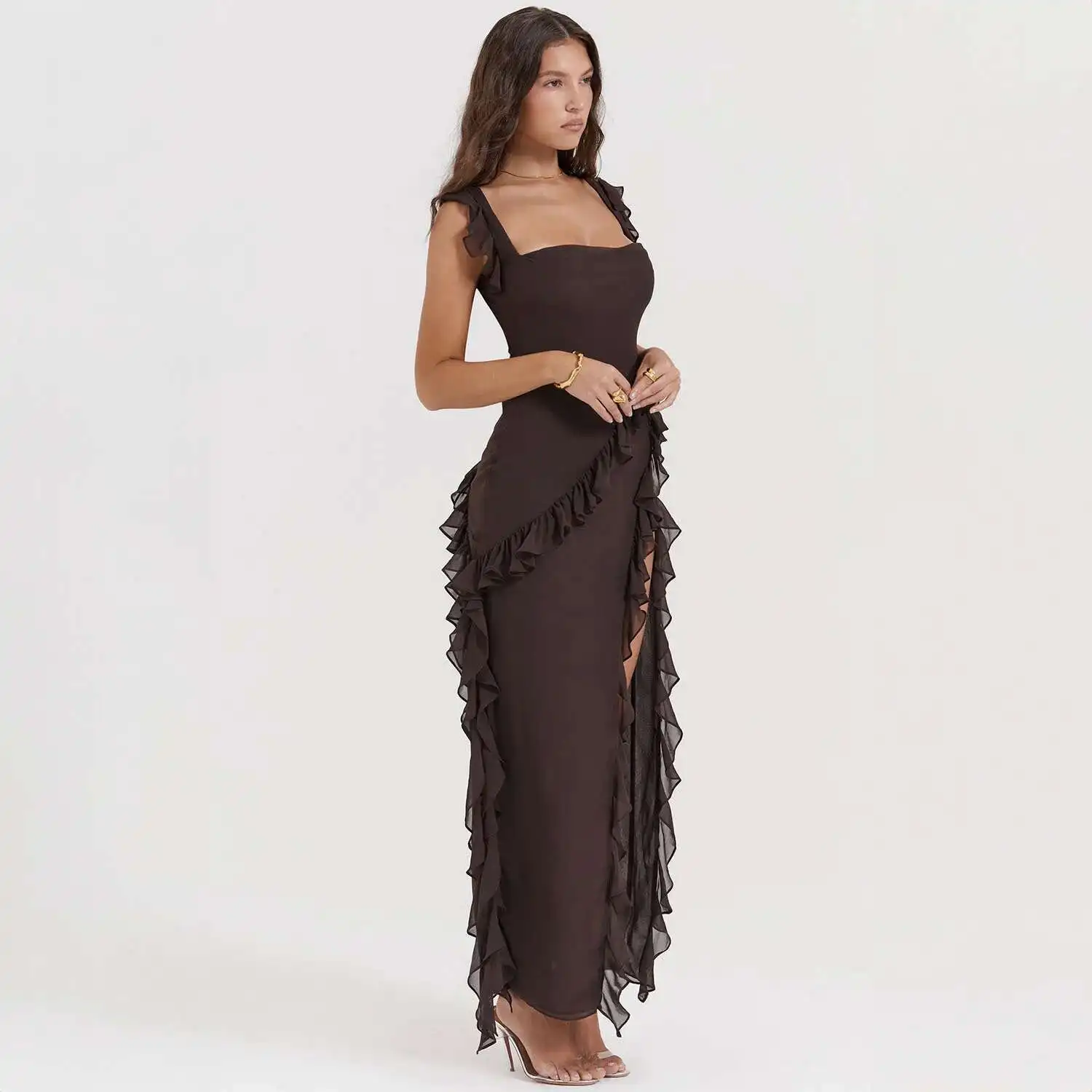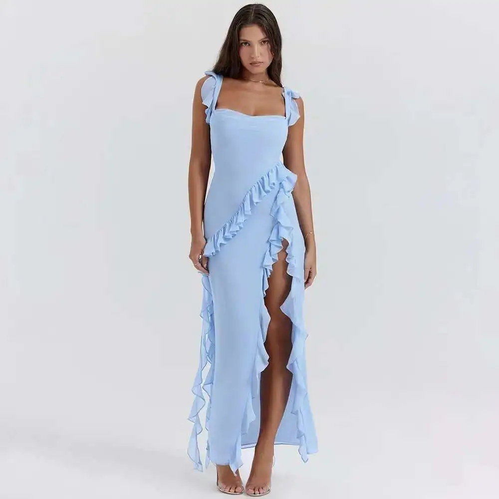 Giyu Sexy Ruffles Summer Dress 2025 Women Clothing Elegant Holiday Club Evening Party Dresses Slash Neck Split Bodycon Long Robe