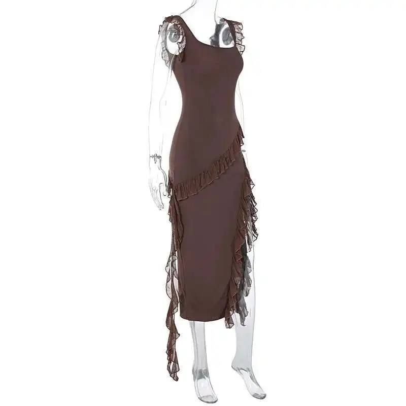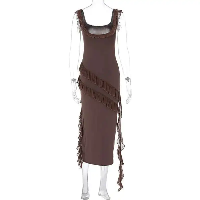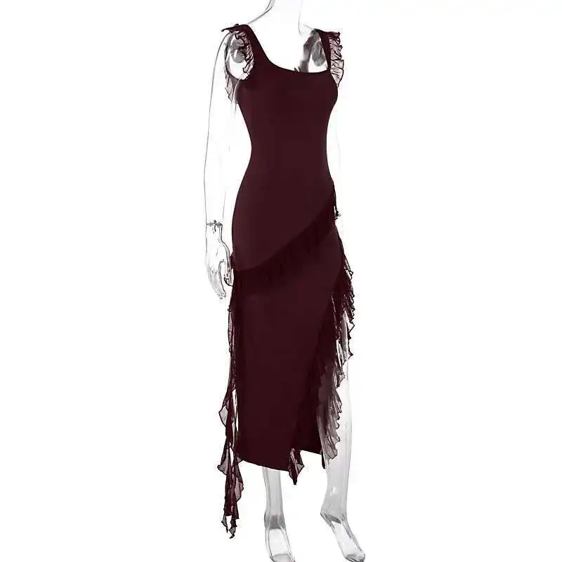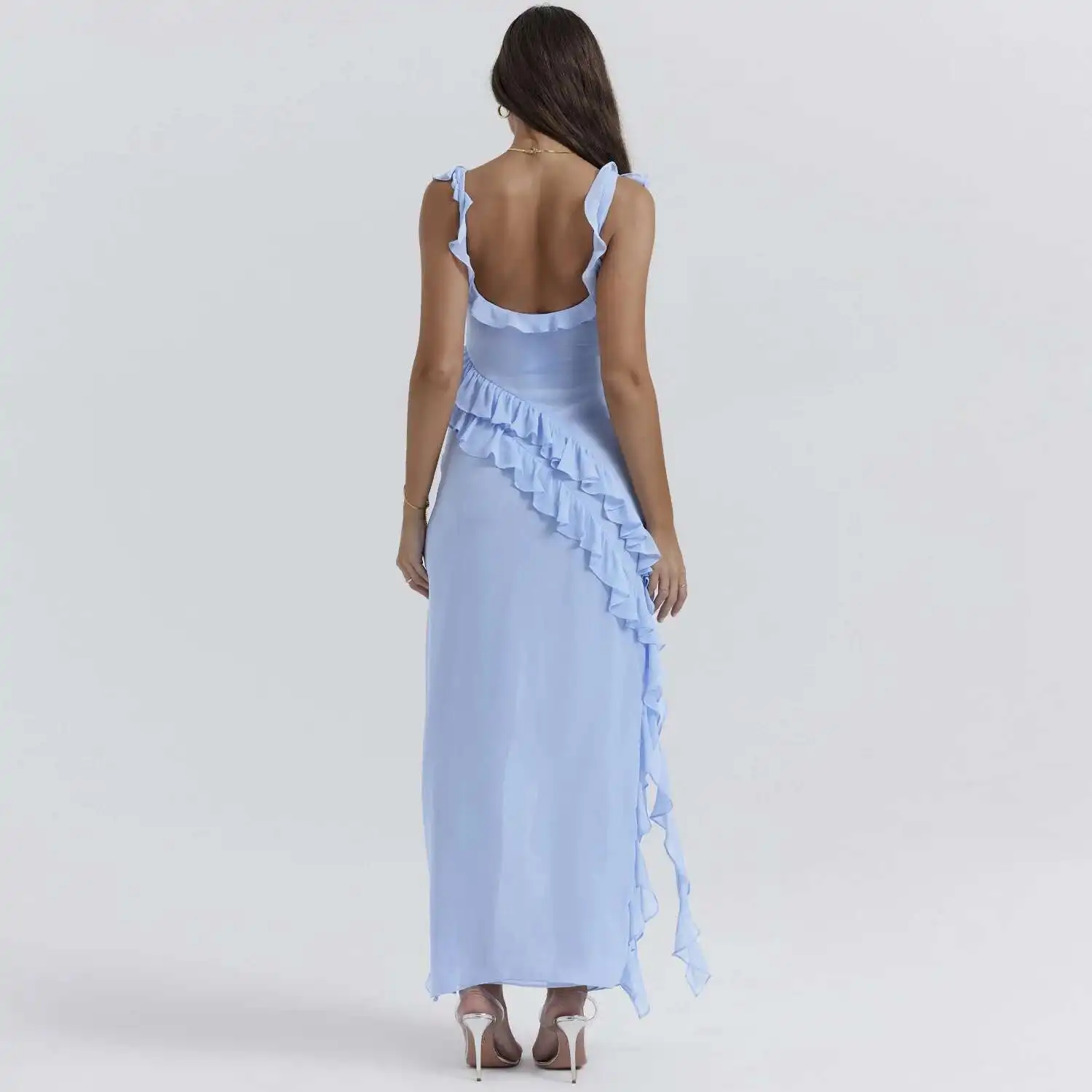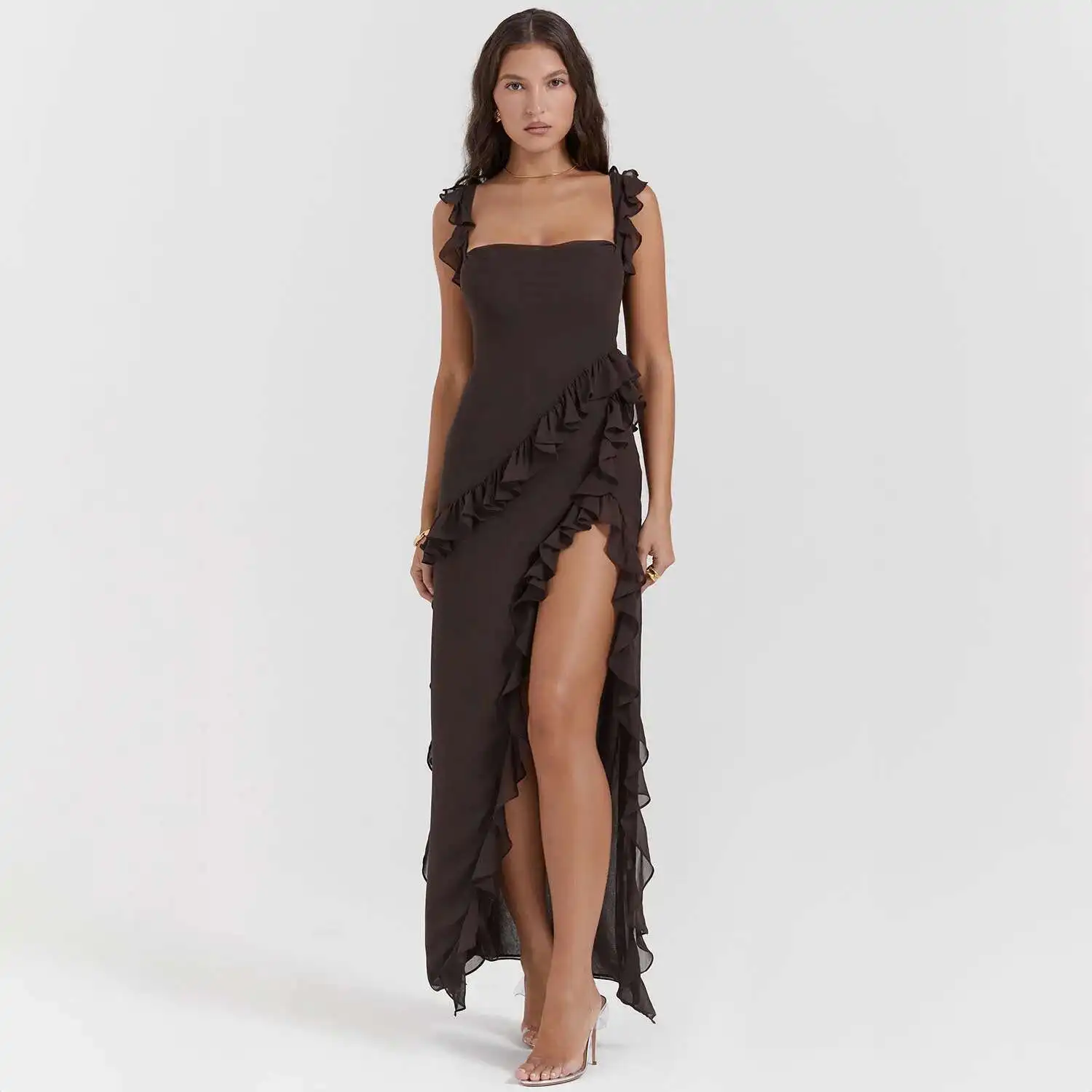 Giyu Sexy Ruffles Summer Dress 2025 Women Clothing Elegant Holiday Club Evening Party Dresses Slash Neck Split Bodycon Long Robe