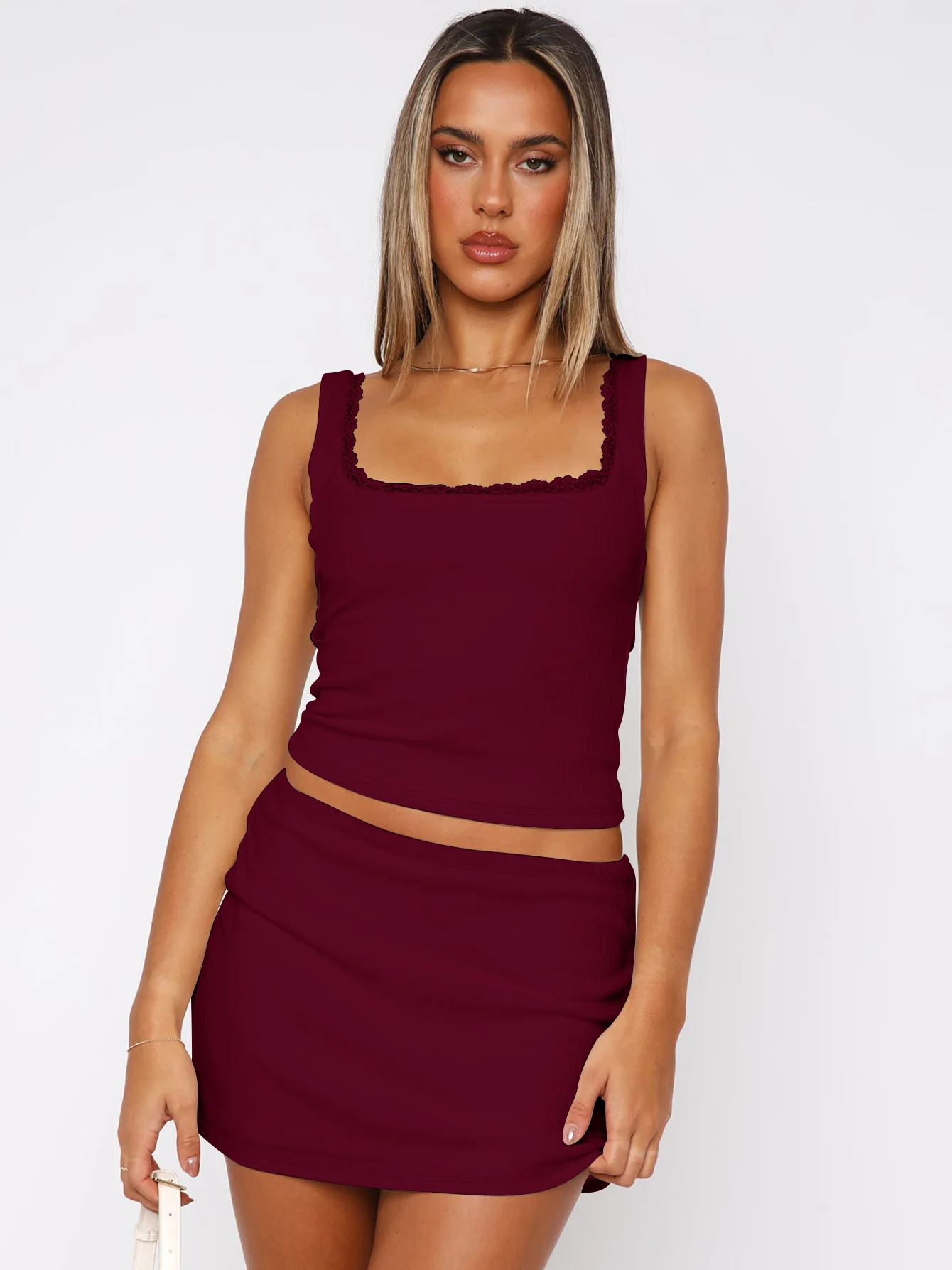 Hawthaw Women 2025 Spring Summer Crop Tank Tops Mini Skirt Party Club Two Piece Set Outfit Basic Wholesale Items For Business