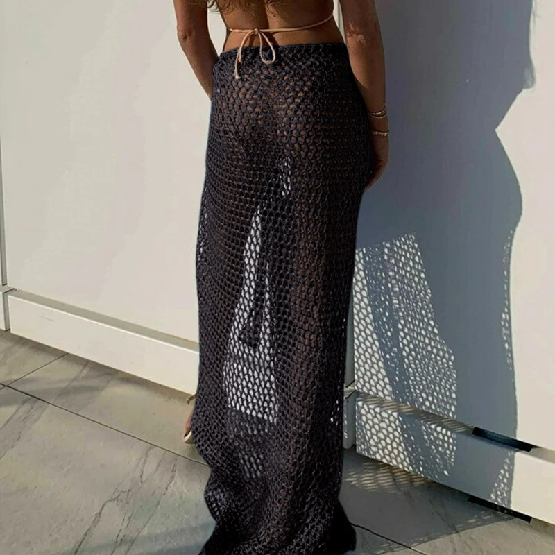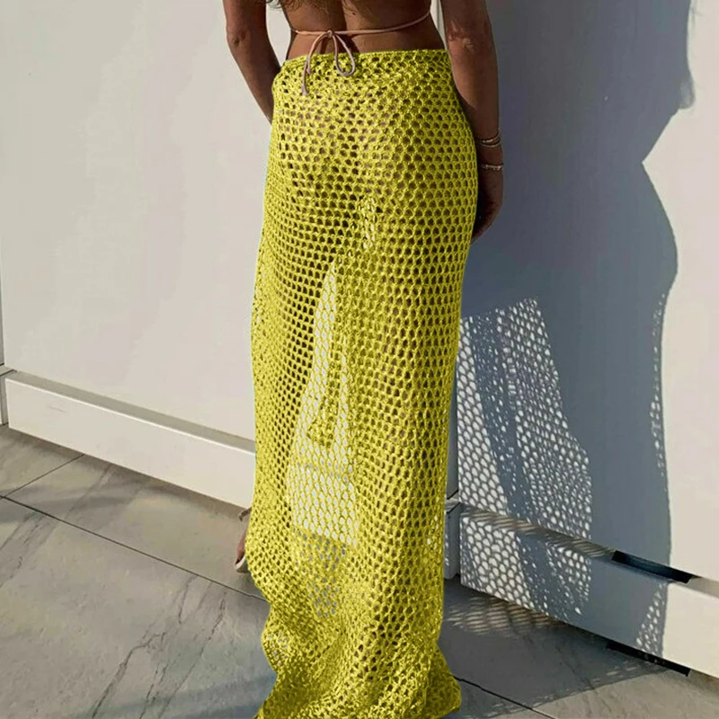 New Arrival Women Knitting Crochet Hollow Out Cover Up Solid Color Beach Dress Sexy Wrap Skirt Binding Rope Beach Wear Sarong
