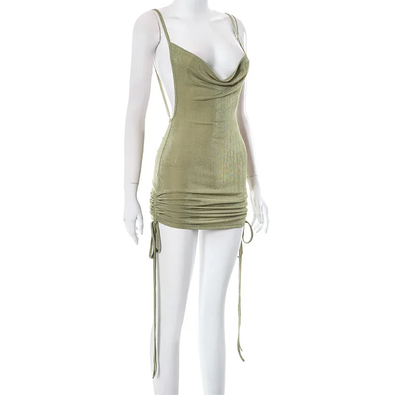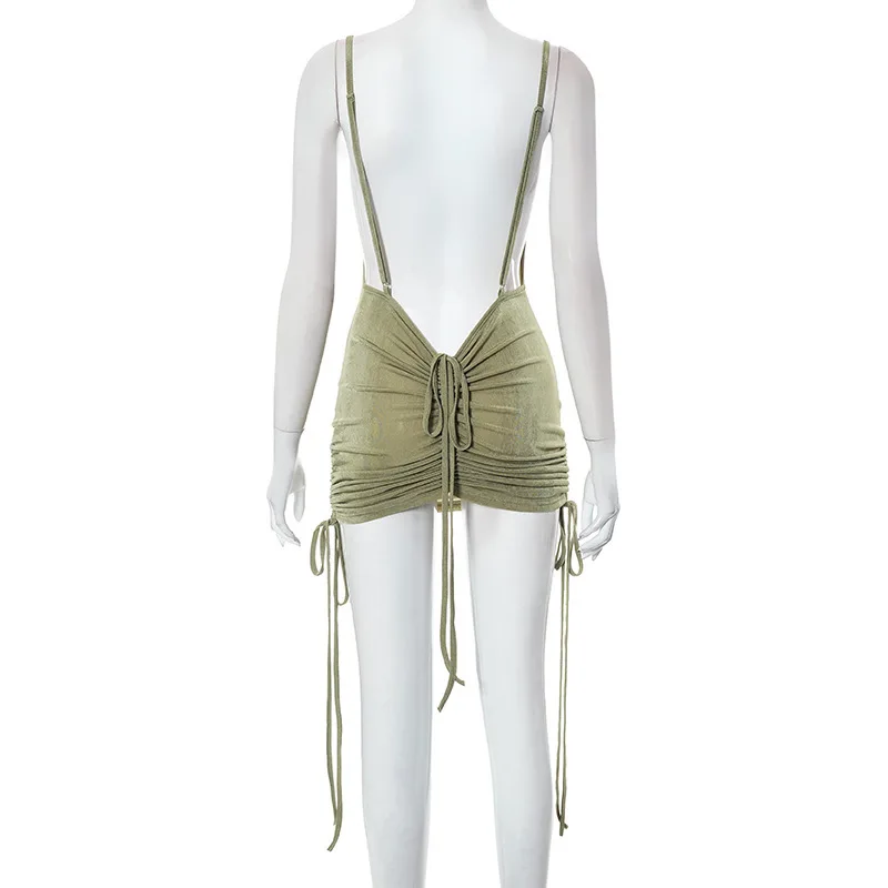 Sexy Low Cut Bandage Party Club Y2K Mini Dress Outfits Women Summer Sleeveless Backless Bodycon Ruched Evening Dresses Vestido