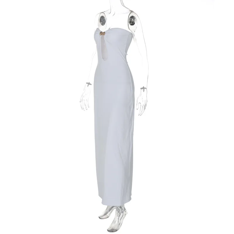 Sexy Strapless Maxi Dress for Women Elegant Fashion Hollow Out Bodycon Dress Summer Evening Party Dress Club Outfits 2024