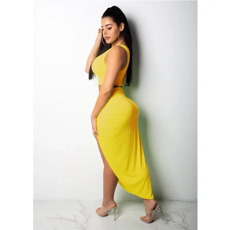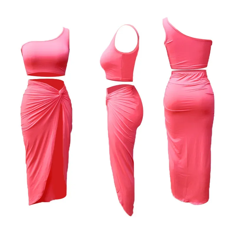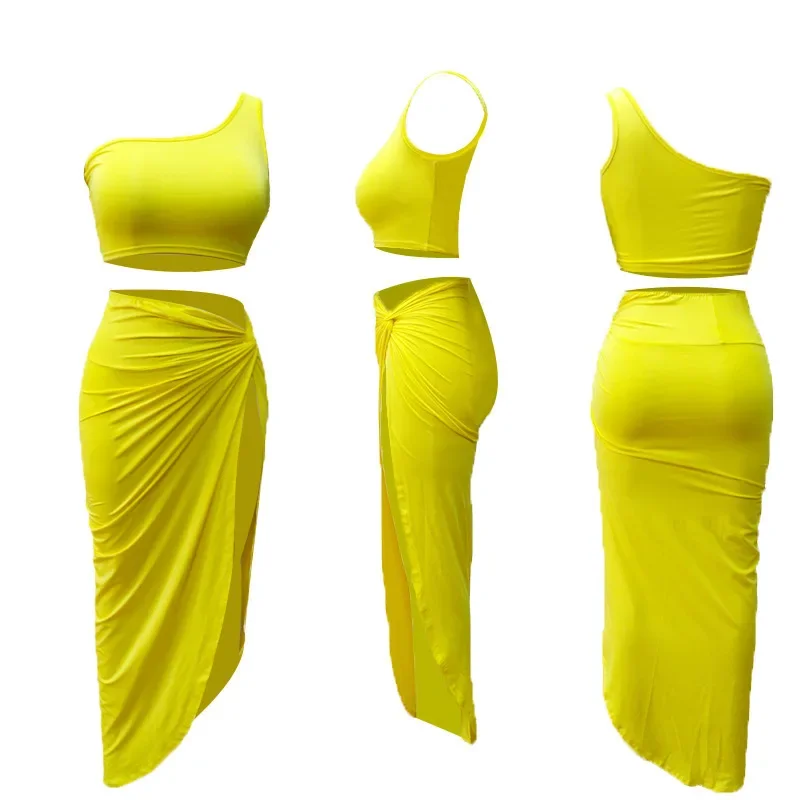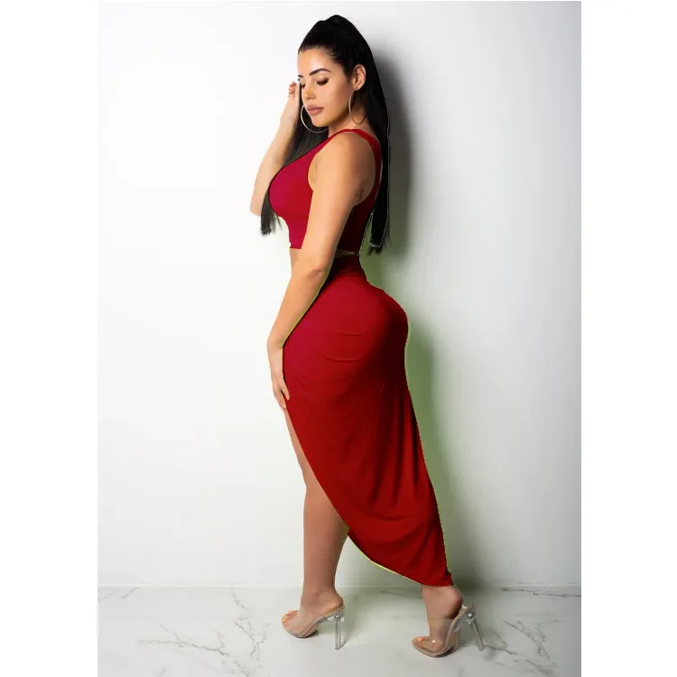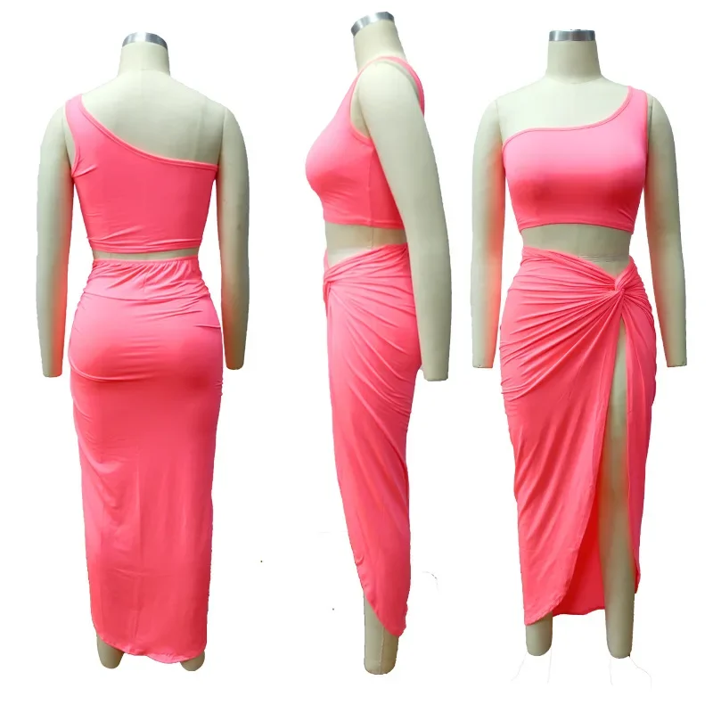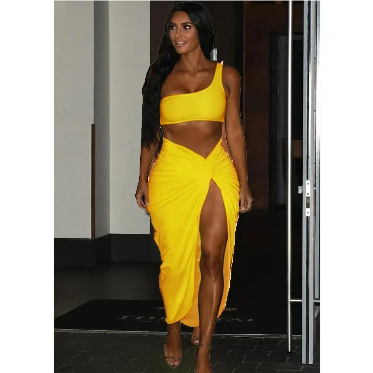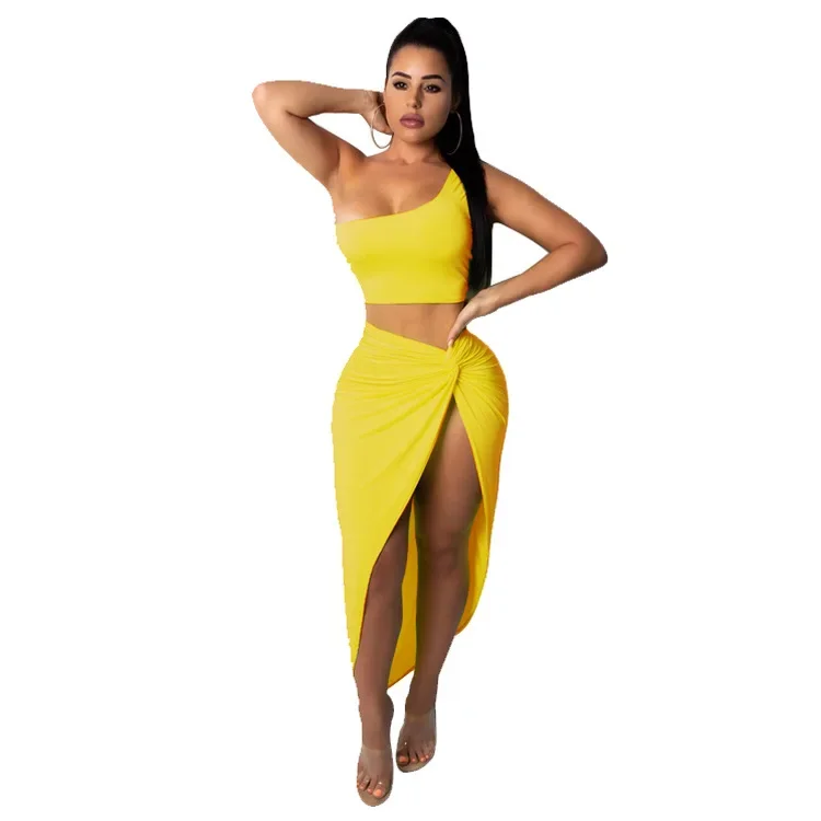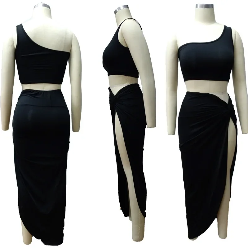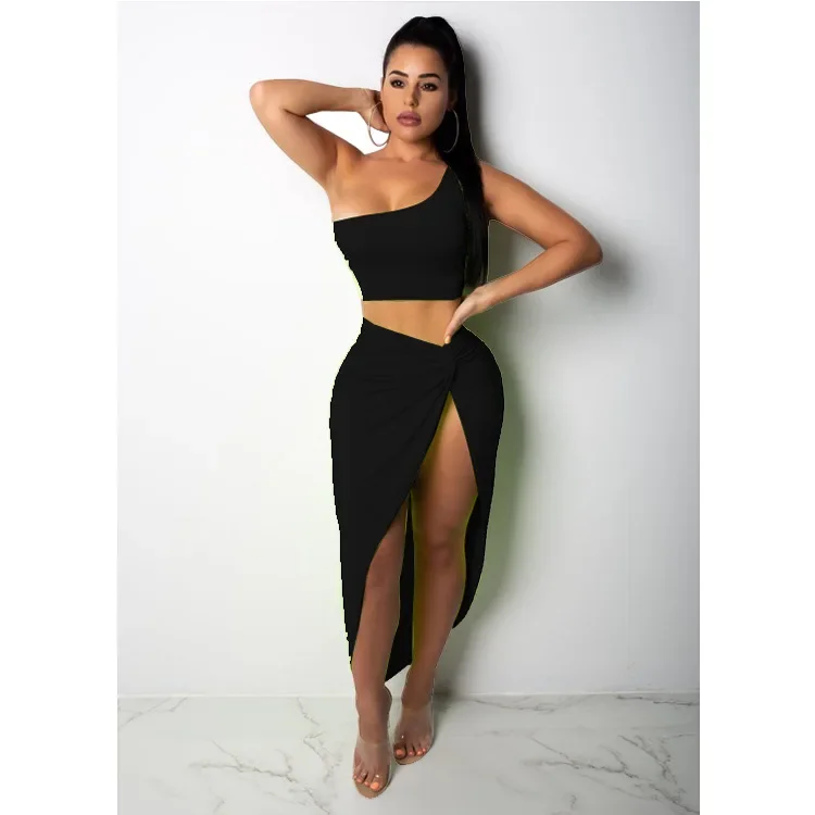 Women Irregular Skew Collar Crop Top Long Skirt 2 Piece Set for Women Female Skirts Women's Suits Evening Party Outfit