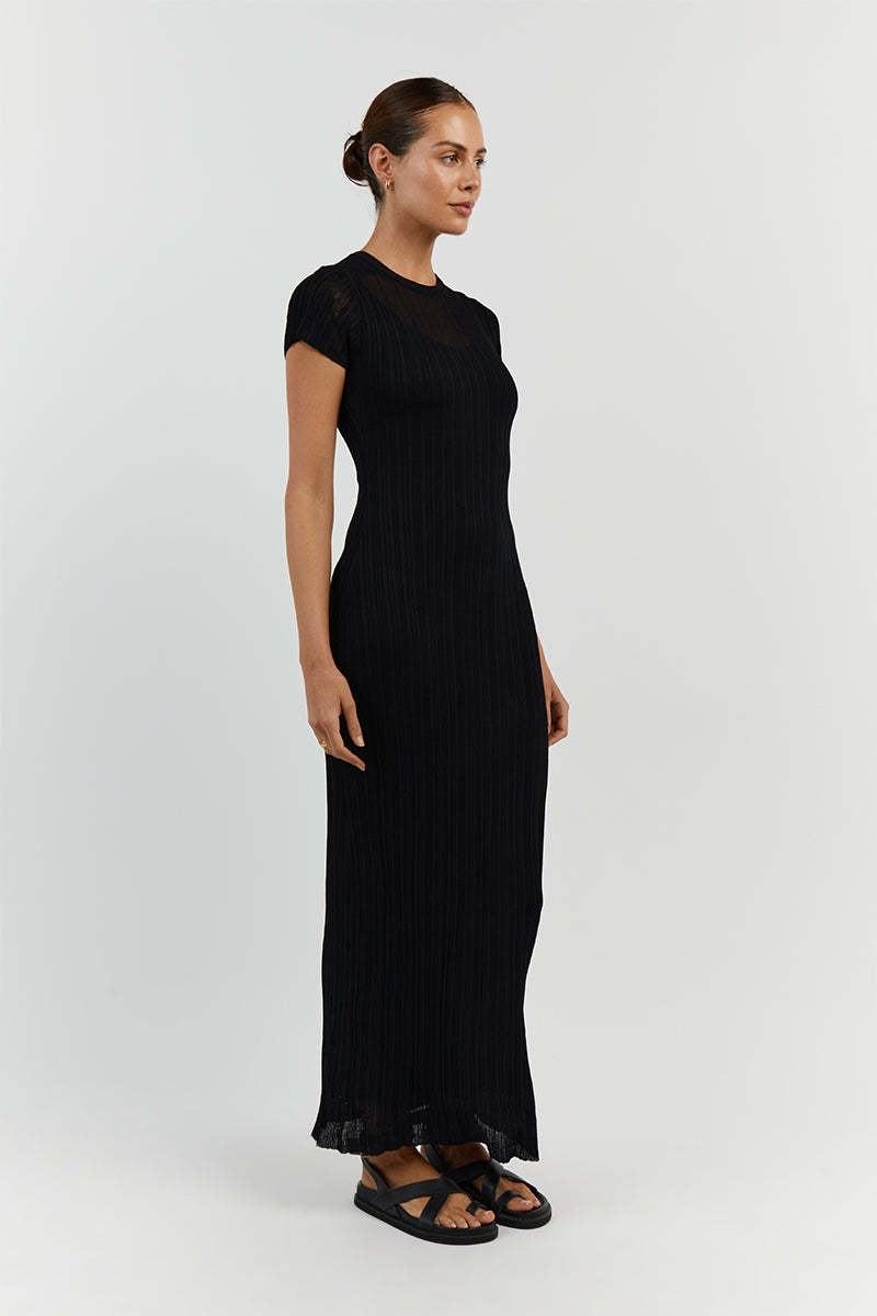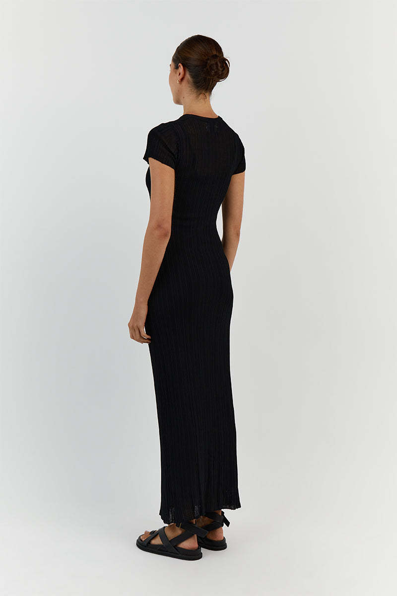 Women's Casual Waist Tight Round Neck See-through Cotton Dress