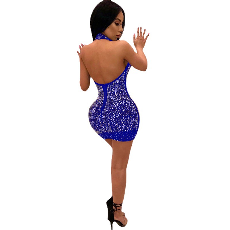 Women's Fashion Elegant Halter Mesh Rhinestone Evening Dress